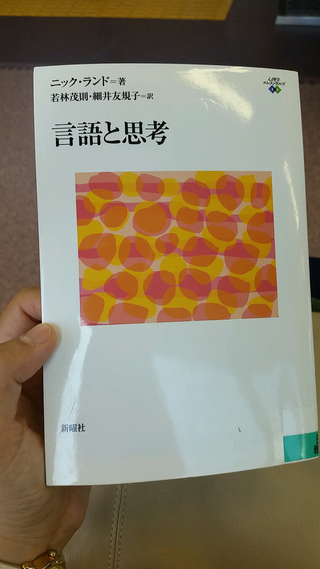 言語と思考/ニック・ランド(訳本) 大学院生生活 2015年05月02日 問題提起や理論的枠組みを決めるため、先生のお薦めで言語と思考関連の本を漁っています。で、割りと文化的側面や言語による問題解決にも焦点を当てて話をしてくれてるこの本に出会いました。まだ途中だけど、参考にしたい箇所が多いのでメモ書き。この訳者の先生もきっとお上手なのかもしれないけど、全体的に文章がまとまっていて読みやすい!必要な先行研究がすぐわかります。概論として使うにはちょうどいいかも♪ PR